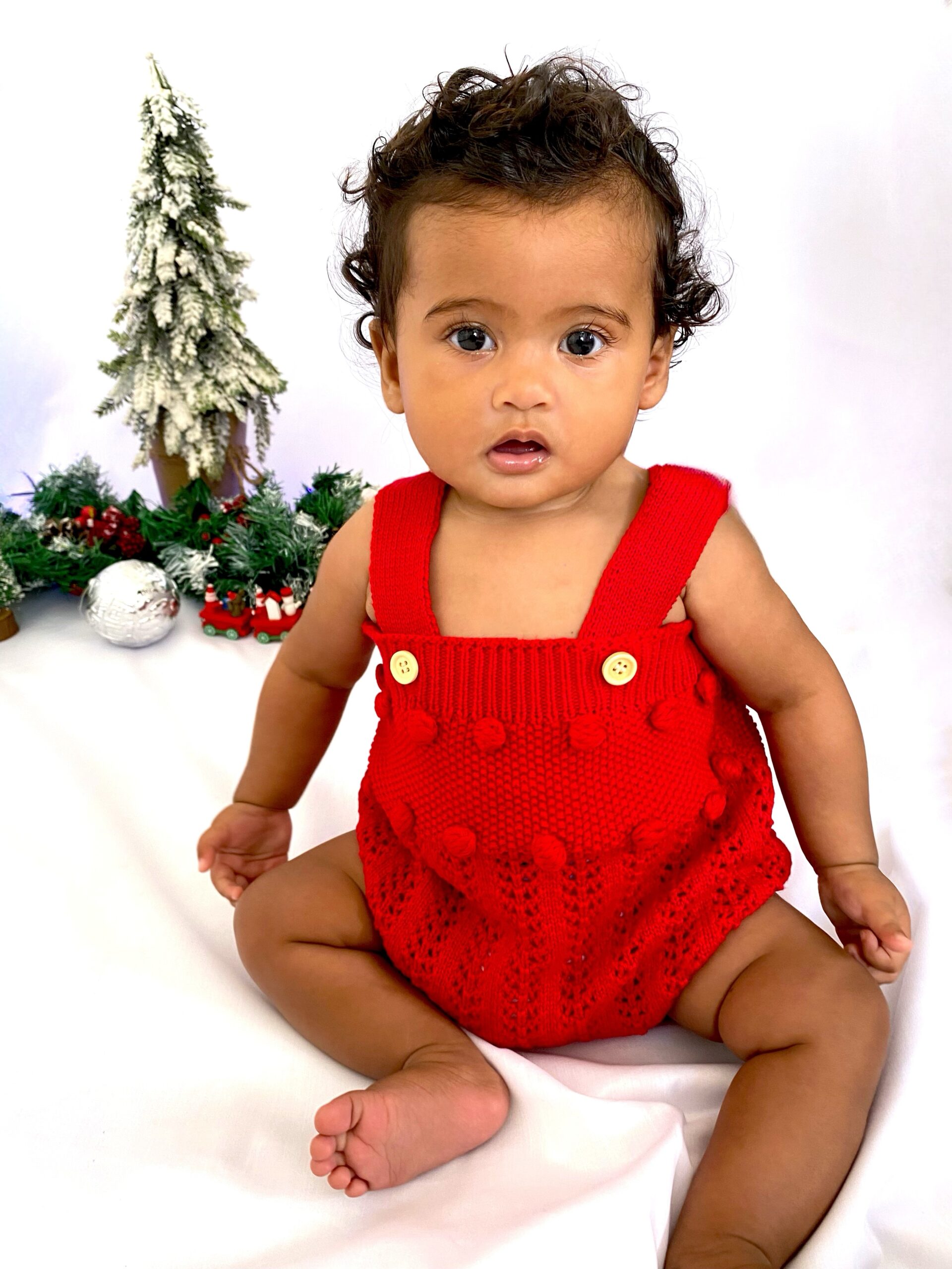 L’ensemble Casse-Noisette, c’est une barboteuse débardeur accompagné de son petit cardigan rouge en cas de fraîcheur à la veille de Noël !