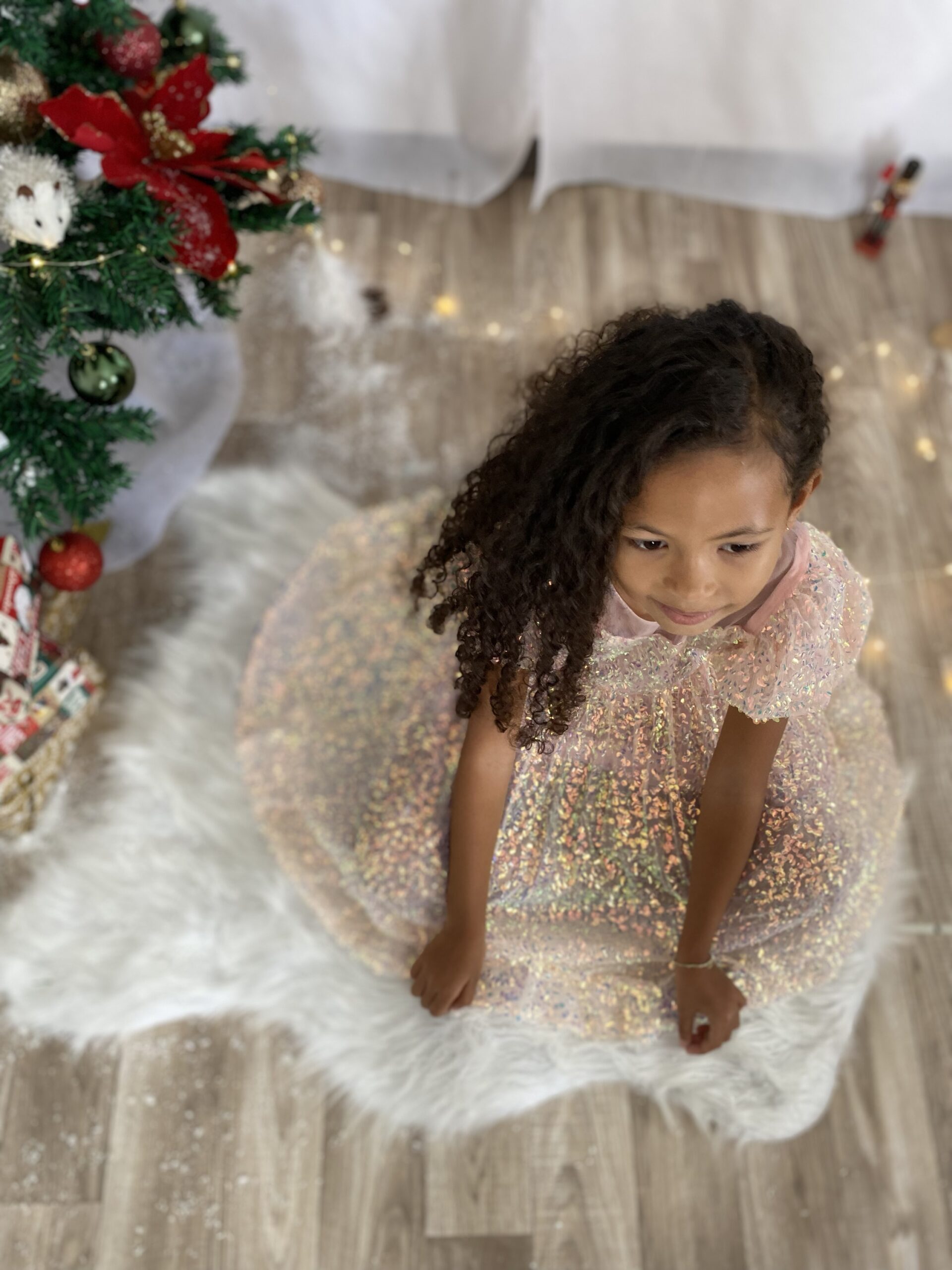 La robe Clara est faite pour briller de mille feux, elle est entièrement recouverte de sequin sur son voilage en tulle. Impossible de passer inaperçue en la portant.
